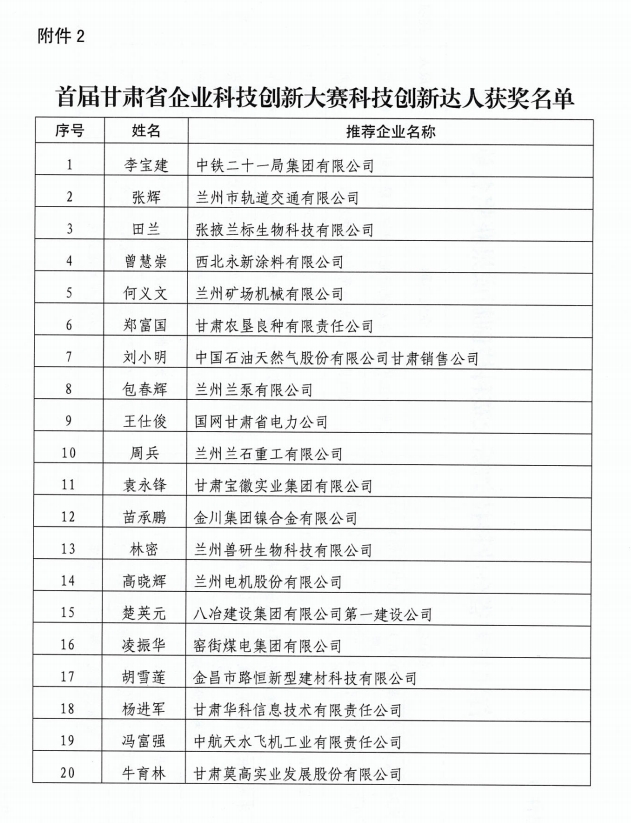 獲獎通知源文件請點擊附件查看首屆甘肅省企業科技創新大賽獲獎通知(2023.8.21).pdf